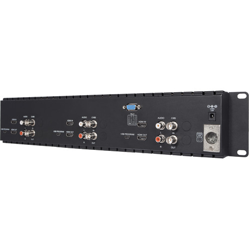 Der FeelWorld T51-H verfügt über drei 5-Zoll-Displays mit einer Auflösung von 800 x 480 in einem schlanken, ganz aus Metall gefertigten 2 RU-Rackmount. Auf der Rückseite befinden sich drei HDMI- und Composite-BNC-Eingänge und -Ausgänge, drei RCA-Audio-Eingänge und ein Tally-Port. Ein dreifarbiges Tally-Licht befindet sich über jedem Display auf der Vorderseite, und ein Kopfhörerausgang ist pro Display für die Audioüberwachung verfügbar. Für die Stromversorgung verfügt der T51-H sowohl über einen DC-Barrel-Eingang als auch über einen 4-poligen XLR-Eingang; für den Barrel-Eingang ist ein Netzteil im Lieferumfang enthalten. Zu den Überwachungsfunktionen gehören Peaking, Pixel-to-Pixel, Zoom all und benutzerdefinierte Farbtemperatur.