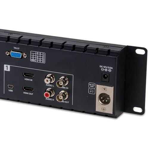 Die Konnektivität umfasst drei HDMI-Ein-/Ausgänge, die bis zu 4K-Video unterstützen, drei Composite-BNC-Ein-/Ausgänge und drei L/R-RCA-Audioeingänge. Jedes Display verfügt über einen dedizierten Kopfhörerausgang und eine dreifarbige Tally-Leuchte für die Broadcast-Koordination. Der Monitor unterstützt DC-Barrel- und 4-polige XLR-Stromeingänge, wobei ein Adapter für den DC-Eingang im Lieferumfang enthalten ist.