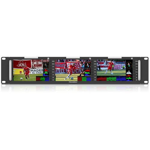Der Feelworld T51 PLUS-H bietet drei 5,5-Zoll-Full-HD-IPS-Displays (1920 x 1080) in einem schlanken 2-HE-Rackgehäuse und ist damit eine kompakte und dennoch leistungsstarke Überwachungslösung für Multi-Kamera-Setups. Jedes Display verfügt über eine Helligkeit von 400 cd/m², einen Kontrast von 1000:1 und einen Betrachtungswinkel von 170° für eine klare und präzise Darstellung.