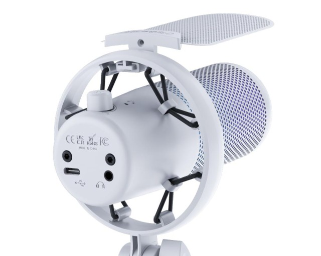 Das VM1 verfügt über einen Multifunktionsknopf, mit dem Sie durch Drehen die Lautstärke einstellen, durch langes Drücken zwischen Mikrofon und Kopfhörer umschalten oder durch kurzes Drücken die RGB-Beleuchtungsmodi wechseln können.