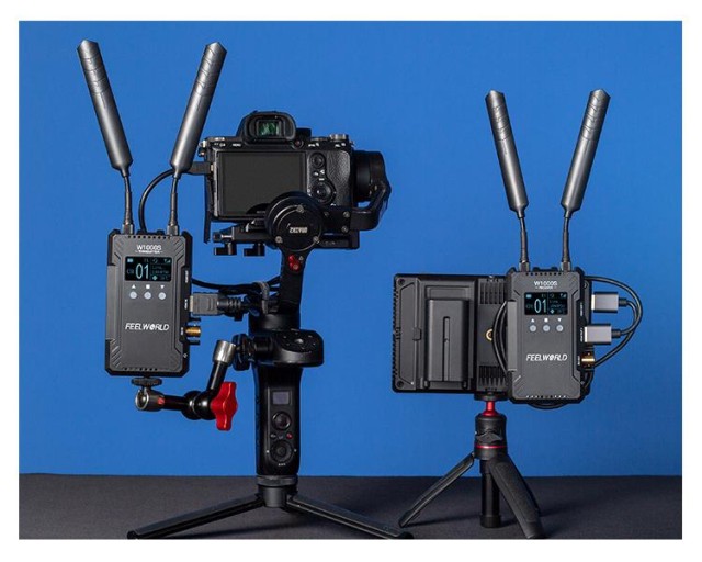 Das FEELWORLD W1000S TX/RX-Set ist ein drahtloses Echtzeit-Videoübertragungssystem mit integrierter Gegensprechanlage und Live-Streaming. Mit einer hohen Datenrate von 8 Mbit/s, SDI- und zwei HDMI-Anschlüssen und anderen Funktionen, die für professionelle Filmaufnahmen entwickelt wurden, unterstützt das W1000S Filmemacher, Crews und Content Creators überall.