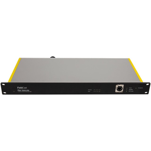 Mit der Fiber Base One von FieldCast können Sie bis zu vier PTZ-Kameras über Glasfaserkabel schalten, überwachen und steuern. Dieses 1HE-Gerät dient als zentraler Hub für die Verwaltung der PTZ-Kameras und der angeschlossenen Fiber Node One Einheiten.