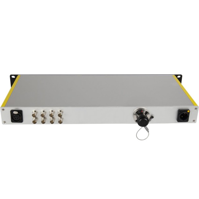 Zusätzlich zur Stromversorgung und Steuerung bietet die Fiber Base One komfortable Überwachungs- und Schaltfunktionen. Sie verfügt über vier 3G-SDI-Ausgänge, über die Sie die Kamerasignale nach Bedarf überwachen und umschalten können. Das Gerät verfügt außerdem über einen LAN-Ethernet-Anschluss für die Netzwerkkonnektivität, der die Fernsteuerung und Verwaltung der PTZ-Kameras ermöglicht. Außerdem verfügt es über einen 4-poligen XLR-Stromausgang, der mit einem optionalen IP-PTZ-Controller verwendet werden kann.