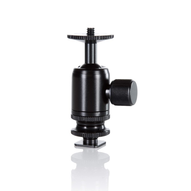 Dieser Kugelkopf von SHAPE ist ein kompakter Kugelkopf mit einer Tragfähigkeit von 2 kg. Er ist um 360° drehbar und hat einen Feststellknopf, der alle Bewegungen des Balls kontrolliert. Der Kugelkopf kann entweder auf dem Blitzschuh der Kamera, einem beliebigen Kaltschuhanschluss oder einem 1/4″-20-Anschluss montiert werden. Es hat einen externen 1/4″-20-Stift an der Oberseite zur Befestigung von Kameras, Monitoren, Mikrofonen oder anderen Geräten.