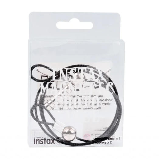Das Fujifilm INSTAX Magnetic Photo Cable ist ein stilvolles und praktisches Zubehör zum Präsentieren Ihrer Lieblingsfotos. Mit starken Magneten können Sie mit diesem 800 mm langen Aufhängekabel mehrere Fotos in jedem Format präsentieren, sodass es sich perfekt für zu Hause, das Büro oder kreative Räume eignet.