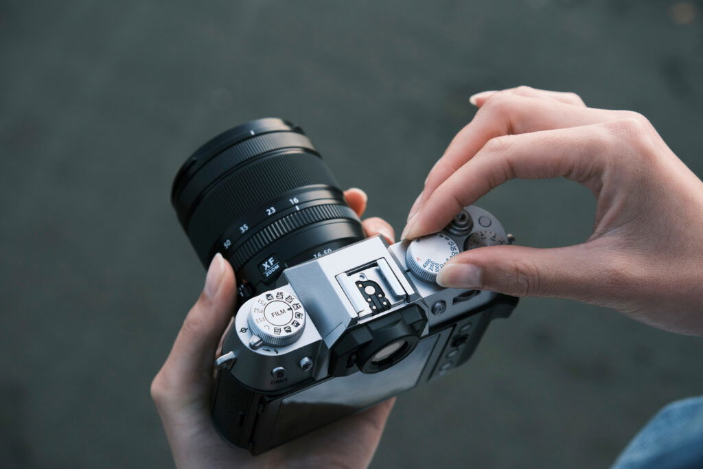 Auf der Oberseite der FUJIFILM X-T50 befinden sich die Einstellräder für Verschlusszeit und Belichtungskorrektur sowie die ganz neuen Filmsimulations-Einstellräder. Zusammen mit dem Blendenring der meisten XF-Objektive können die Einstellungen überprüft und angepasst werden, ohne die Kamera einschalten zu müssen, sodass Sie sich auf das Wichtigste konzentrieren können: die Erstellung des perfekten Bildes.