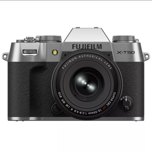 Die FUJIFILM X-T50 in Silber ist zusammen mit dem Objektiv XC15-45mm f/3.5-5.6 OIS eine kompakte und leichte spiegellose Kamera, die hochwertige Leistung und vielseitige Aufnahmeoptionen bietet. Diese Kombination ist ideal für Fotografen, die ein tragbares und dennoch leistungsstarkes Kamerasystem mit einem eleganten Design suchen.