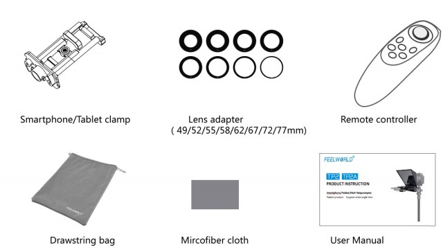 Kompaktes Lesegerät mit einem Smartphone/Tablet (Eingabeaufforderung) und einer DSLR/DSLM-Kamera (Aufnahme). Das Kit enthält einen Montagerahmen, acht Objektivverkleinerungsringe (49/52/55/58/62/67/72/77 mm), eine Fernbedienung (Bluetooth), einen Mikrofaser-Staubbeutel, eine Tragetasche und eine Universalklemme zur Befestigung von Handys und Tablets. Natürlich gibt es auch eine App für Android und iOS. Abmessungen 205x97x171 mm, Gewicht 300 g.