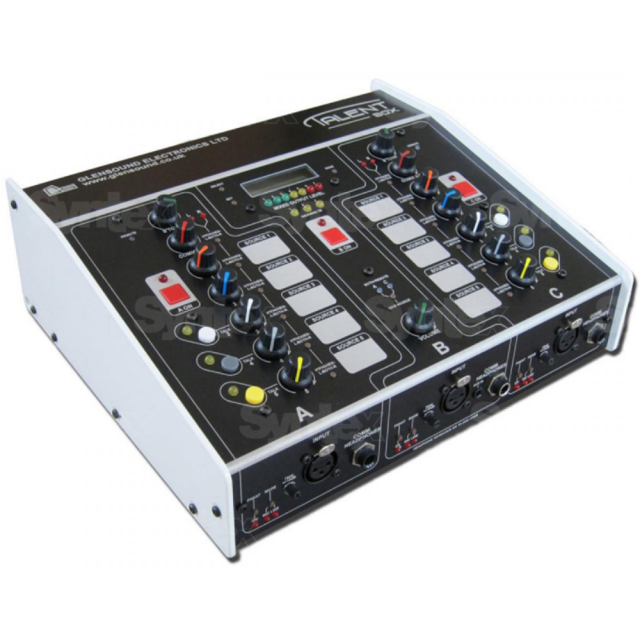 ist die neue Generation der Kommentatorensysteme. Sie ermöglicht den Anschluss von bis zu drei Kommentatoren, und Sie können an jede der drei Positionen eine Fernbedienung anschließen. Die Ausgangslautstärke kann von einem Techniker aus der Ferne über eine Webschnittstelle gesteuert werden. Die Talent Box kann an ein größeres Kommentatorensystem angeschlossen werden.Version 3: Symmetrischer Transformator-Eingang und symmetrischer Transformator-Ausgang mit Lundhal-Transformator für Master-Ausgang