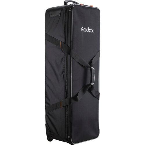 Die Godox CB-01 Transporttasche für Lichtstative und Stative mit Rollen ist eine strapazierfähige, wasserabweisende Lösung für die Aufbewahrung und den Transport von Stativen und Stativen mit einer Länge von bis zu 114 cm. Mit ihrer Nylonkonstruktion, integrierten Rollen, zwei Tragegriffen oben, einem Tragegriff oben und schützenden Eckenschutzvorrichtungen sorgt sie für bequeme Mobilität und maximalen Schutz Ihrer Ausrüstung.