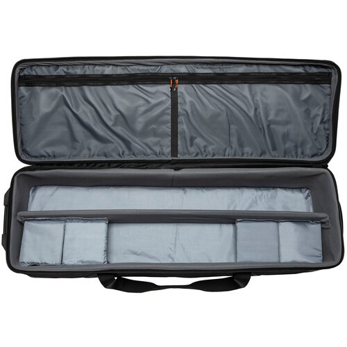 Die Godox CB-01 Transporttasche mit Rollen für Lichtstative und Stative wurde für Fotografen und Videografen entwickelt, die eine zuverlässige Möglichkeit benötigen, ihre Stative sicher zu transportieren. Diese schwarze Nylontasche bietet Platz für Ausrüstung mit einer Länge von bis zu 114 cm und vereint Langlebigkeit mit Funktionalität. Die beiden verbundenen Tragegriffe oben und der Tragegriff an der Oberseite bieten vielseitige Trageoptionen, während die integrierten versenkten Rollen das Rollen Ihrer Ausrüstung mühelos machen. Der Reißverschluss und der gepolsterte Innenraum mit verstellbaren Klettverschluss-Trennwänden bieten zusätzliche Sicherheit und Anpassungsmöglichkeiten, und ein Gummifuß sorgt dafür, dass die Tasche aufrecht stehen kann, ohne umzukippen. Eckschutzvorrichtungen schützen vor Stößen und Abrieb und machen sie ideal für häufige Reisen oder Dreharbeiten vor Ort. Die wasserabweisende Konstruktion schützt die Ausrüstung vor leichter Feuchtigkeit, und ihre großzügigen Innenmaße (111 x 33 x 24 cm) passen für die meisten Standardständer und Stative. Das Paket enthält die Tasche CB-01 in einem Karton mit einem Gewicht von 9 kg und den Maßen 122 x 36 x 33 cm.