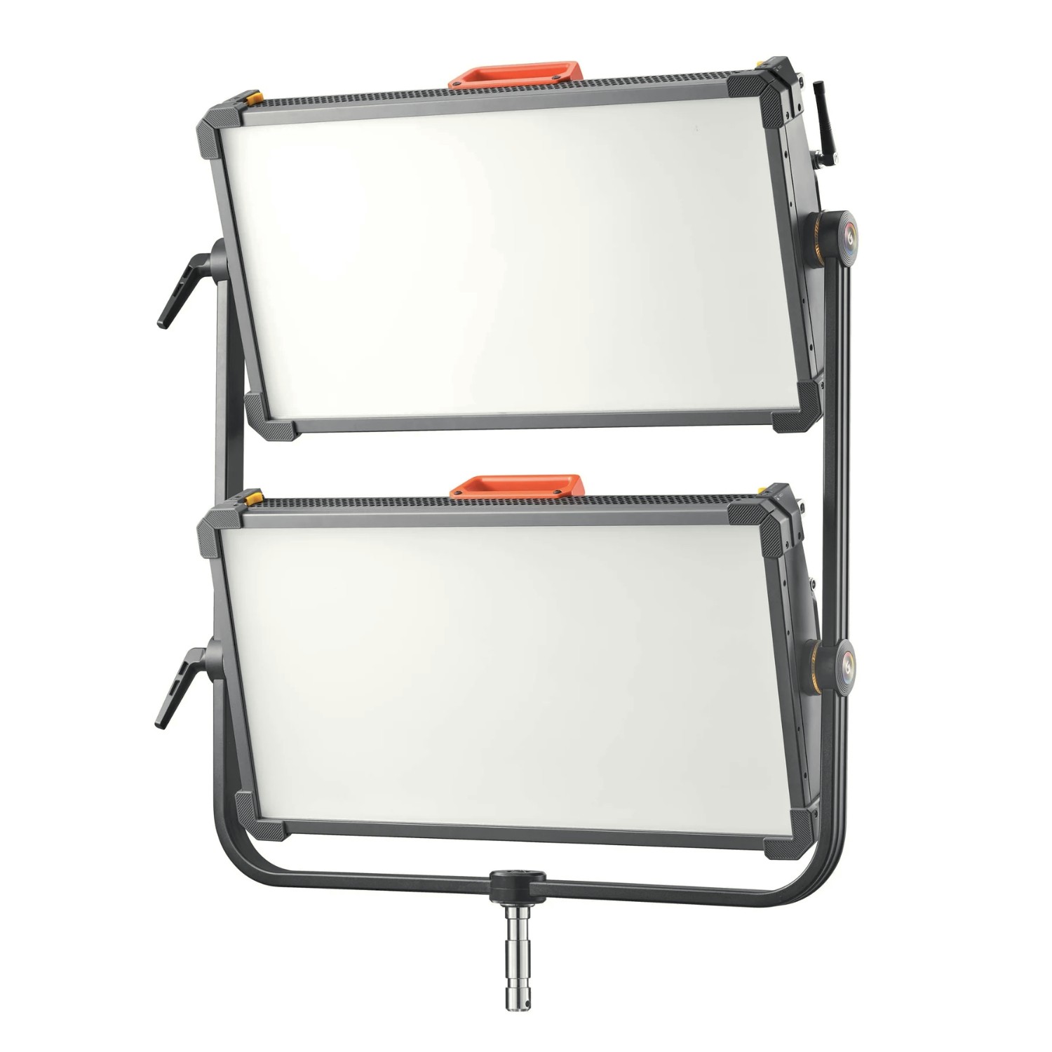 Das Godox P600RY03 Double Vertical Yoke ermöglicht die Montage von zwei KNOWLED P600R RGB-Panel-Leuchtenauf einem einzigen Stativ, wobei jedes Panel unabhängig voneinander gedreht werden kann. Ideal für eine größere Lichtabdeckung und kreative virtuelle Produktionsaufbauten.