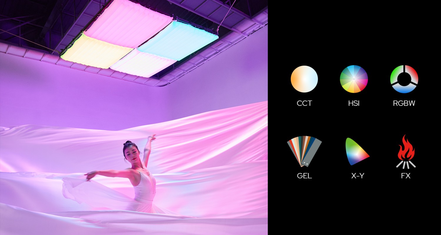 Mit einer Leistung von 100 W bietet die F100R eine vollständige RGB-Farbsteuerung sowie einen breiten CCT-Bereich von 1800–10.000 K und eine präzise Grün-/Magenta-Einstellung, wodurch eine genaue Farbanpassung und kreative Flexibilität gewährleistet sind. Mit einer außergewöhnlichen Farbtreue von CRI ≥96 und TLCI ≥97 erfüllt sie die strengen Standards, die für Rundfunk- und Kinoanwendungen erforderlich sind.