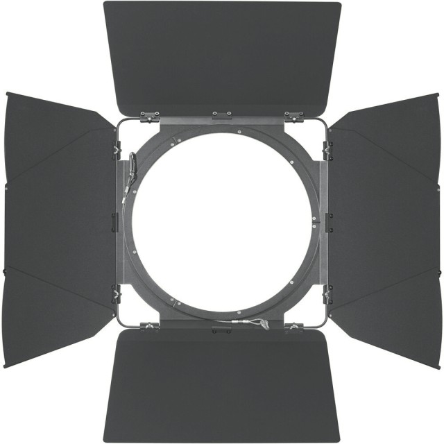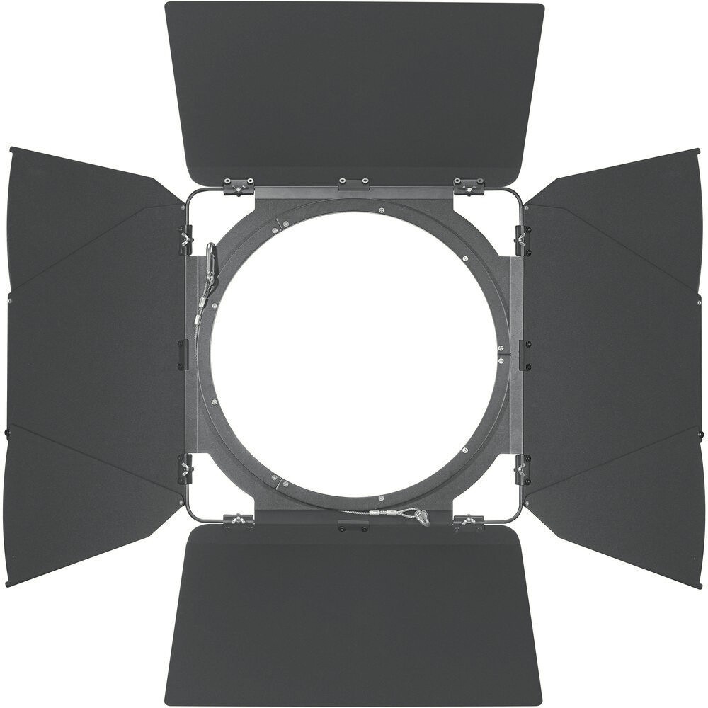 Die Godox Knowled GF14B 4-Wege-Barndoors für GF14-Fresnel-Linsen bieten präzise Strahlformung, Richtungssteuerung und Vermeidung von Streulicht für Godox MG1200Bi Bi-Color LED-Monolights.