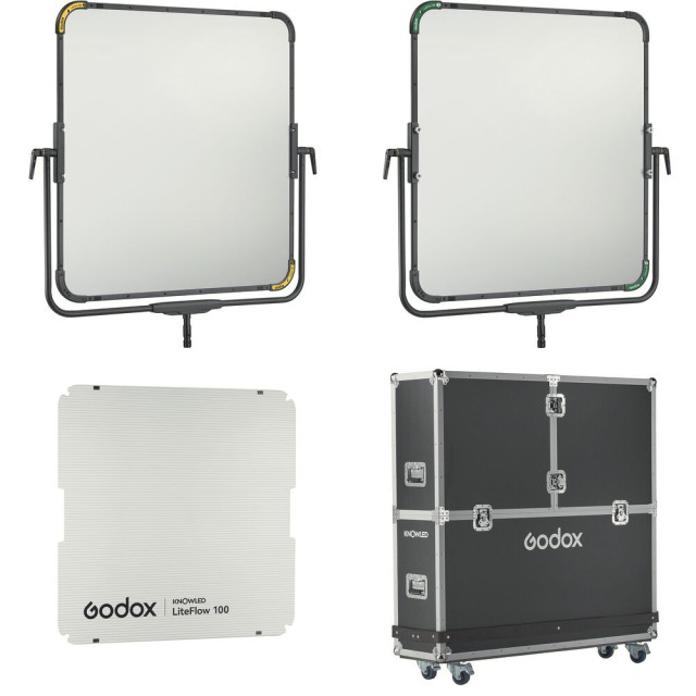 Das Godox Knowled LiteFlow 100 K1 Kit bietet eine vielseitige und professionelle Lösung für die Lichtsteuerung in Film- und Fotoaufnahmen. Dieses Kit enthält zwei doppelseitige Reflektoren mit einer Größe von 40 × 40 Zoll, die jeweils auf einem robusten Bügelrahmen montiert sind und eine schnelle Installation sowie eine flexible Lichtformung ermöglichen.