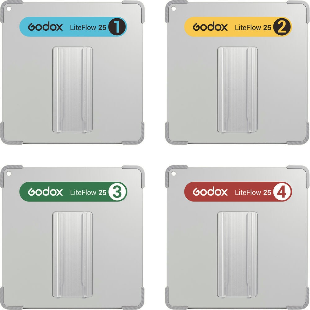 Das Godox Knowled LiteFlow 25 Reflektoren-Kit ist Teil des fortschrittlichen Cine Lighting Reflector Systems von Godox, das Kameraleuten, Beleuchtern und Filmemachern eine außergewöhnliche Kontrolle über indirekte Beleuchtung sowohl im Studio als auch vor Ort ermöglicht. Dieses vielseitige Kit enthält vier 10 × 10" LiteFlow 25 Reflektoren, die jeweils unterschiedliche Diffusionseigenschaften bieten – hart, mittel, weich und weiches Streifenlicht –, sodass Sie das Licht auch auf engstem Raum mit filmischer Präzision formen und umlenken können.