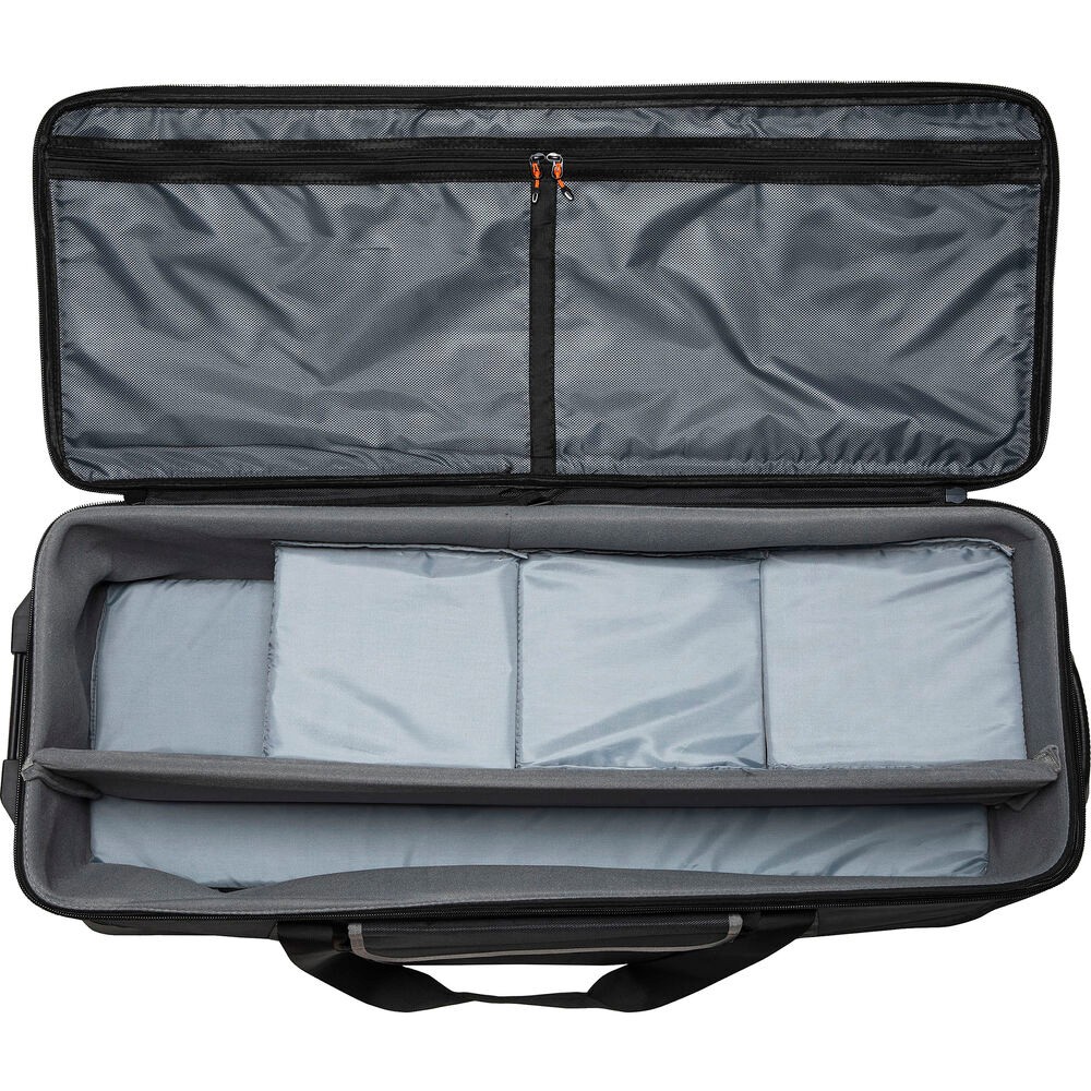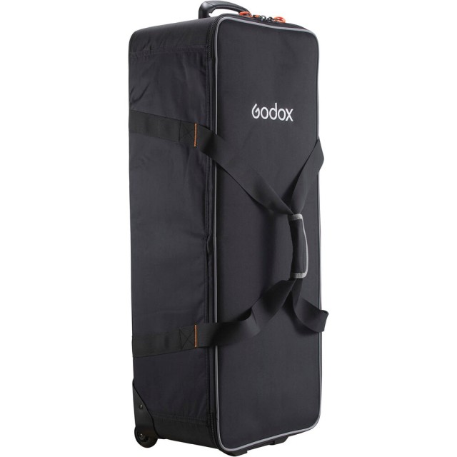 Das Kit wird über Wechselstrom oder optionale V-Mount-Akkus mit Strom versorgt und eignet sich daher sowohl für Studio- als auch für Außenaufnahmen. Zu den Sicherheitsmerkmalen gehören ein Befestigungsband und ein Drahtseil für eine sichere Installation. Alle drei Leuchten werden mit stabilen Lichtstativen, Reflektoren, Netzteilen und Schutzabdeckungen geliefert. Der mitgelieferte Godox CB-06 Hartschalenkoffer mit Rollen sorgt für Ordnung und Transportfähigkeit Ihres gesamten Kits und verfügt über zusätzliche Taschen für kleines Zubehör und ein klares ID-Fenster.