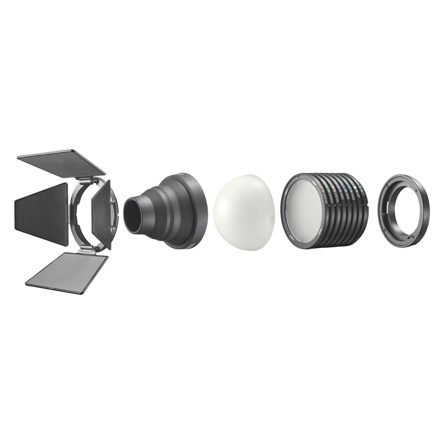 Das Godox Knowled Magnet Kit MK bietet ein vielseitiges Set magnetischer Modifikatoren für die LED-Cine-Leuchten MS60Bi und MS60R, darunter Flügeltore, einen Snoot, einen Kuppeldiffusor und eine Mikrooptik, mit denen Kameraleute das Licht präzise formen und steuern können.