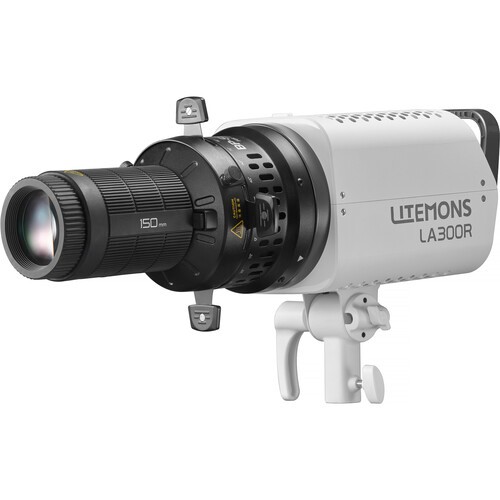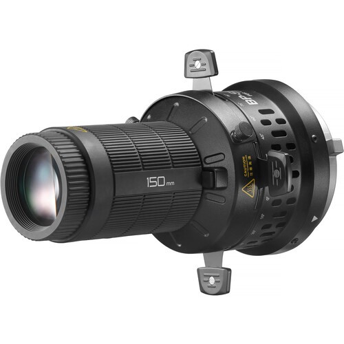 Der Godox 150-mm-Projektionsaufsatz für Litemons (LA150R/LA200R/LA300R/LA300Bi) erweitert die kreativen Beleuchtungsmöglichkeiten. Er verfügt über eine 150-mm-Optiklinse, vier verstellbare Blenden und eine Bowens-kompatible Halterung und wird mit einem Gobo-Set und Farbclips für dynamische Projektionseffekte bei Porträt- und Umgebungsbeleuchtung geliefert.