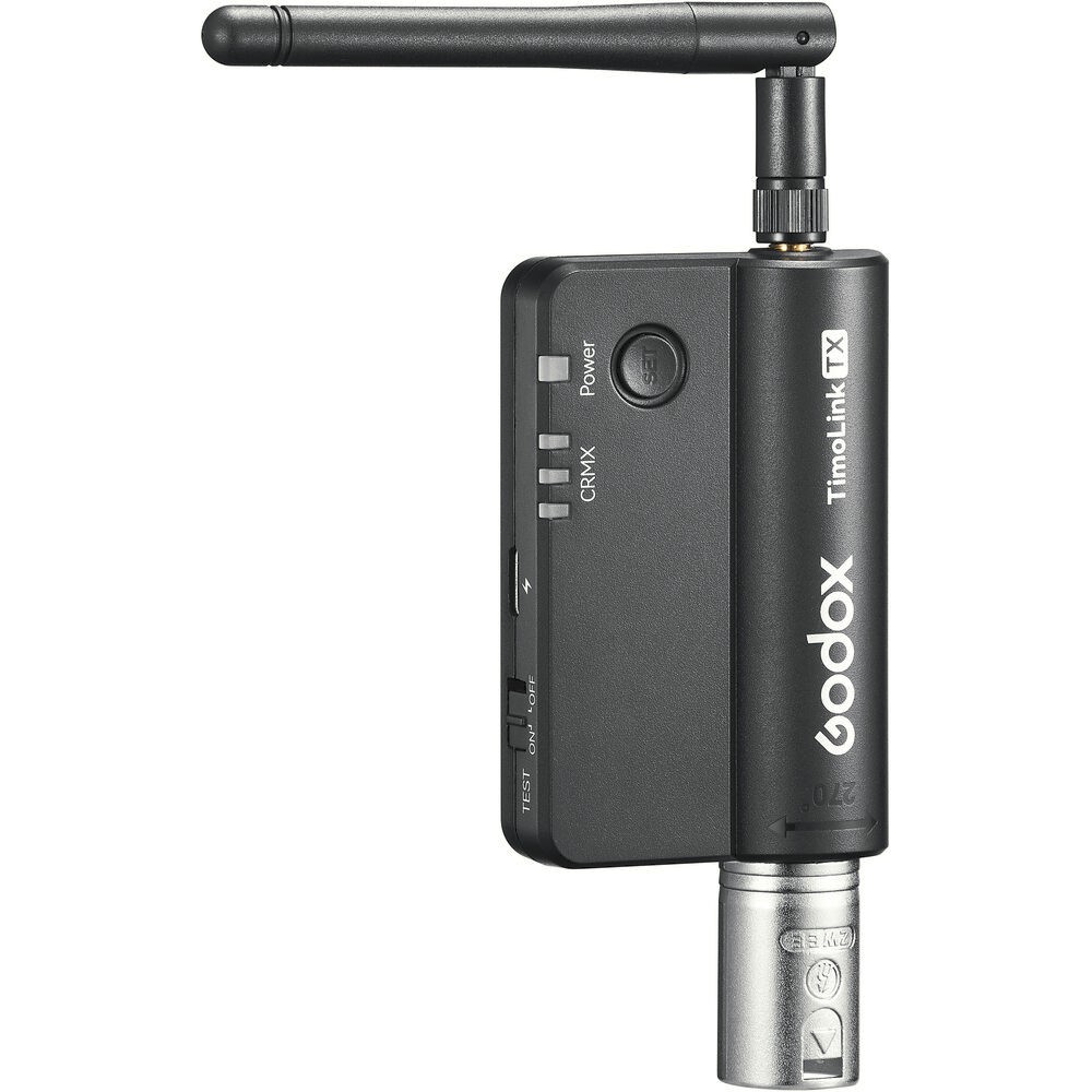 Der Godox Knowled TimoLink TX ist ein professioneller drahtloser DMX-Sender mit integriertem LumenRadio CRMX-Modul für eine zuverlässige Signalübertragung über große Entfernungen von bis zu 300 Metern. Er wurde für Filmemacher, Rundfunktechniker und Lichttechniker entwickelt und verwandelt jede kabelgebundene DMX-Konsole in ein drahtloses System. Für maximale Kompatibilität verfügt er über einen um 270° drehbaren 5-poligen XLR-Anschluss. Mit separaten Set-/Reset-Tasten und einer integrierten Testfunktion zur Überprüfung der DMX-Ausgabe bietet der TimoLink TX eine effiziente, stabile und flexible Steuerung für moderne Beleuchtungsanlagen.