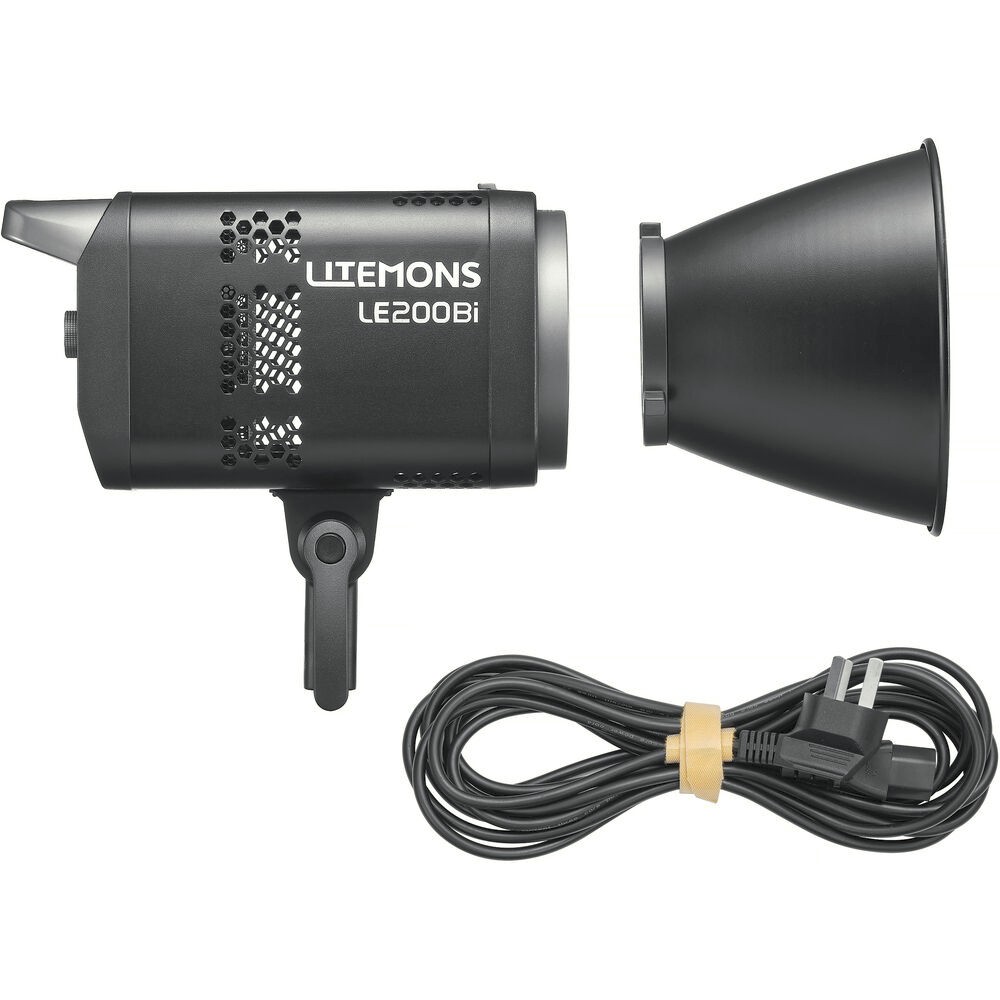 Das Gerät verfügt über ein robustes Metallgehäuse mit einem Gewicht von 2,9 kg und einen leisen Lüfter mit einstellbaren Modi und einer Option zum Ausschalten des Lüfters für einen geräuschlosen Betrieb. Die Bowens S-Halterung gewährleistet die Kompatibilität mit einer Vielzahl von Softboxen und Modifikatoren. Mit dem mitgelieferten Reflektor und Netzkabel ist der LE200Bi sowohl für den mobilen Einsatz als auch für professionelle Studioaufbauten geeignet.