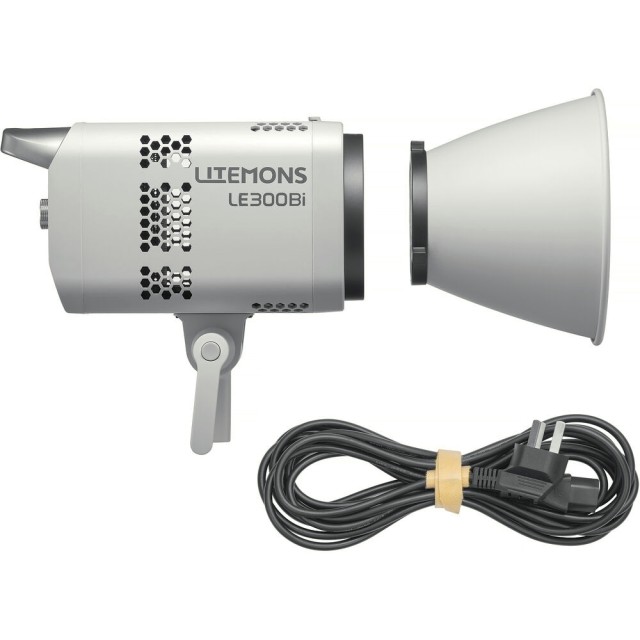 Der LE300Bi wird direkt über Wechselstrom mit einem integrierten Netzteil betrieben und verfügt über ein robustes Metallgehäuse mit aktiver Kühlung und wählbaren Lüftermodi – ideal, um bei geräuschempfindlichen Dreharbeiten für Ruhe zu sorgen. Die Bowens S-Halterung gewährleistet eine breite Kompatibilität mit Softboxen und Modifikatoren, während sein leichtes Design (2,9 kg) ihn ideal für Studio- und mobile Sets macht. Komplett mit Reflektor und Netzkabel ist er eine vollständige und einsatzbereite Beleuchtungslösung für Kreative und Profis gleichermaßen.