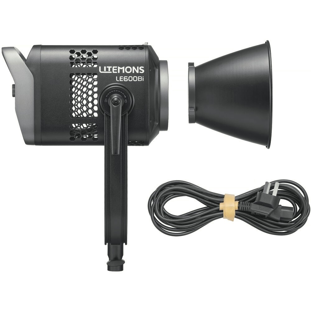 Der LE600Bi verfügt über ein integriertes Netzteil für eine vereinfachte Einrichtung, für die nur das mitgelieferte Netzkabel erforderlich ist. Ein eingebautes aktives Kühlsystem sorgt für eine stabile Leistung bei längerem Gebrauch, mit einstellbaren Lüftermodi und einem Silent-Modus für geräuschempfindliche Aufnahmeumgebungen. Dank seiner Bowens S-Halterung ist er mit einer ganzen Reihe von Softboxen, Reflektoren, Parabolmodifikatoren und Laternen kompatibel, was ihn äußerst vielseitig für die Lichtgestaltung macht.