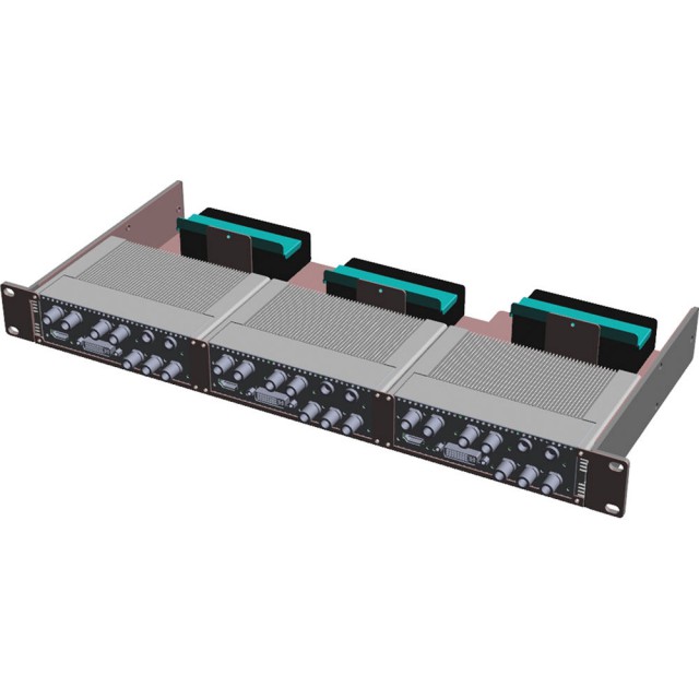 Montagesatz für die Montage von bis zu drei ADVC-G Konvertern in einem Rack (2U Höhe). Enthält auch zwei Stecker.