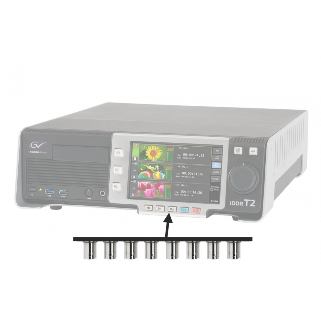 Optionales Add-on für Grass Valley T2 iDDR 4K Disc-Recorder/Player mit 8x SDI-Schnittstelle, das den gleichzeitigen Anschluss von Ein-/Ausgängen im Quad-Link-SDI-Modus ermöglicht. Muss zusammen mit dem Rekorder bestellt werden.