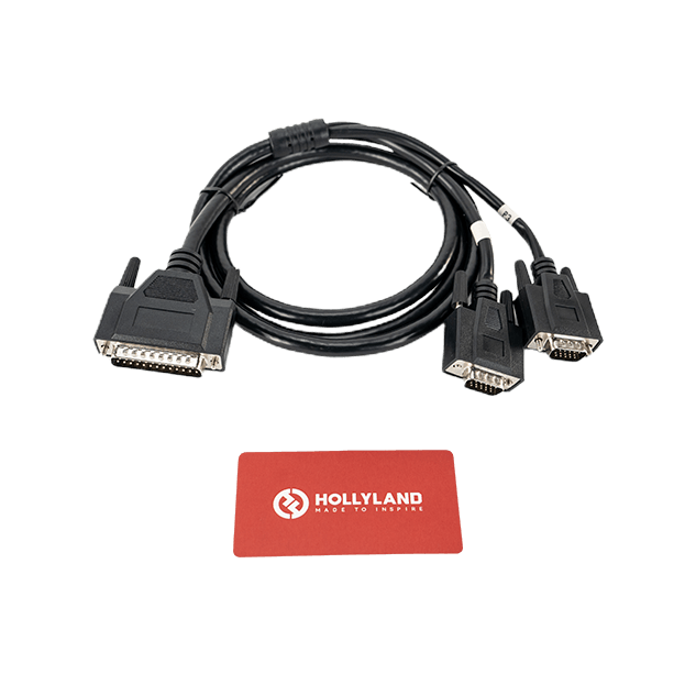 Dieses DB25-Stecker-zu-Dual-HDB15-Stecker-Tally-Kabel von Hollyland ist für das Wireless Tally System konzipiert. Das 4,9' lange Kabel hat einen DB25-Stecker und zwei HDB15-Stecker.