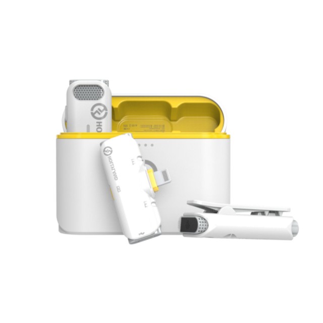 Mit dem weißen LARK C1 DUO Drahtlos-Mikrofonsystem von Hollyland können Sie bis zu zwei Personen auf Ihrem mit Lightning ausgestatteten iOS-Gerät aufzeichnen, um mobilen Journalismus zu betreiben oder Inhalte zu erstellen. Das System besteht aus zwei Sendern mit eingebauten omnidirektionalen Mikrofonen und einem Zweikanal-Empfänger - alles in einem kompakten Formfaktor. Mit den Clips auf der Rückseite jedes Senders können Sie sie am Revers eines Hemdes befestigen, während der Plug-in-Empfänger direkt an den Lightning-Anschluss Ihres Smartphones oder Tablets angeschlossen wird, der ihn auch mit Strom versorgt.