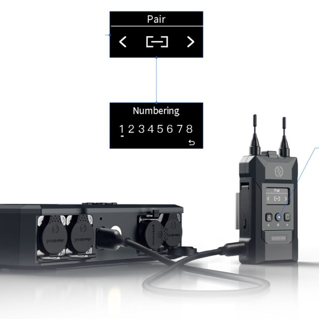 Die Verwaltung des M1-Systems ist sehr einfach: Wählen Sie einfach mehrere bestimmte Beltpacks aus und erstellen Sie eine Gruppe davon. Gruppen können nicht nur über die Basisstation, sondern auch über eine mobile App oder eine Website erstellt und verwaltet werden. Das System unterstützt bis zu drei Gruppen von Beltpacks ("Beleuchtungen", "Kamera", "Beschallung" usw.) für maximale Flexibilität bei der Verteilung am Arbeitsplatz. Die Basisstation kann dank einer Reihe von Schnittstellen auch problemlos mit anderen Audiogeräten verbunden werden: 2W (XLR), 4W (RJ-45) und PoE/LAN. Das Pairing der Beltpacks erfolgt direkt durch den Hersteller; kommen neue Beltpacks hinzu, erfolgt das Pairing durch Anschluss an die USB-Schnittstelle der Basisstation.