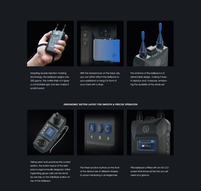 Professionelle Headsets mit Lemo-Steckern sind im Lieferumfang enthalten, aber auch andere Headsets mit 3,5-mm-Steckern können an die Beltpacks angeschlossen werden. Interessant sind auch die beiden austauschbaren Li-Ionen-Akkus der Beltpacks, die separat in etwa 2,5 Stunden aufgeladen werden können und eine Laufzeit von bis zu 6 Stunden pro Akku ermöglichen.