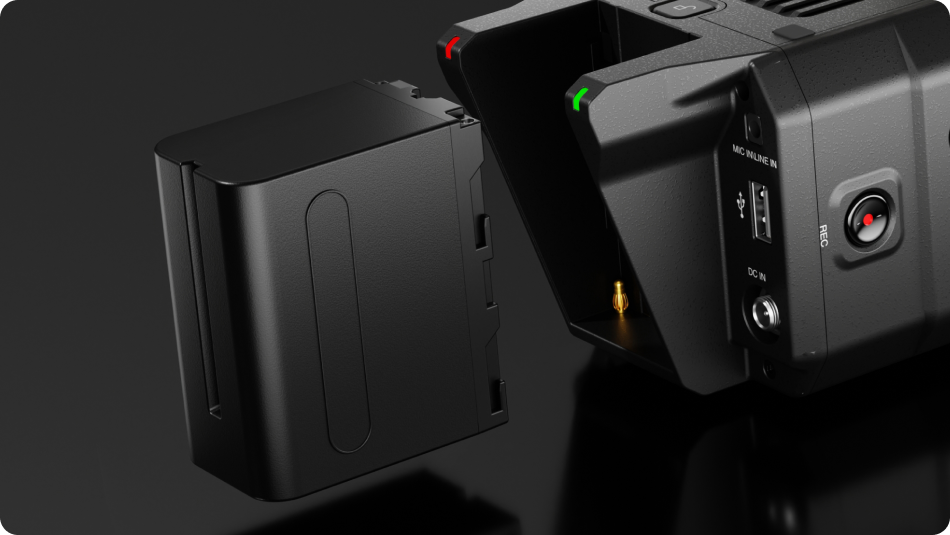Mit dem externen NP-F-Akku und der DC-Stromversorgung können Sie ununterbrochen streamen, wo immer Sie Ihre kreative Reise hinführt.