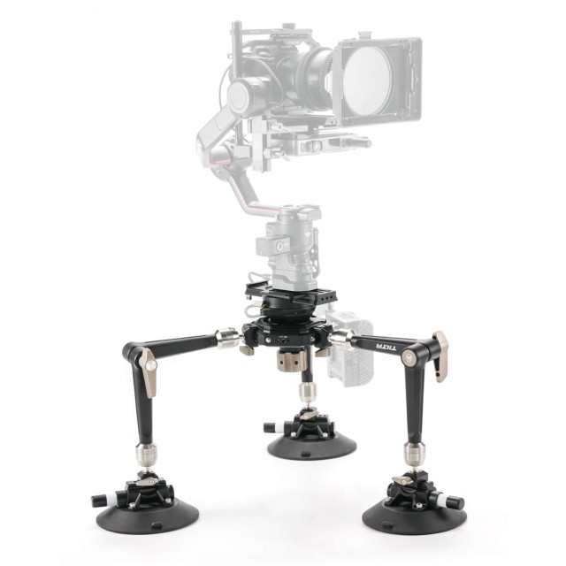 Wir stellen das Hydra Articulating Car Mounting System vor. Mit drei 6-Zoll-Saugnäpfen mit hochbelastbaren Gelenkarmen und einer Gewichtskapazität von 44 Pfund ist dieses leichte System ideal für Innen- und Außenaufnahmen von Autos in verschiedenen Umgebungen. Die zentrale Basis des Systems bildet ein 75-mm-Kugelkopf mit niedrigem Schwerpunkt und einer horizontalen Verstellung von bis zu 15°. Andere 75-mm-Stativköpfe können ebenfalls verwendet werden.