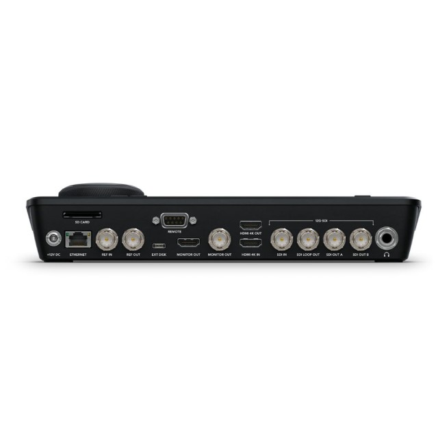 Die Verbindung über 12G-SDI ermöglicht den Anschluss an professionelles Broadcast-Equipment. Sie unterstützt 4K-Datei-Aufnahme und -Wiedergabe, HD-Proxy-Arbeit, Scopes-Display, 3D-LUTs und Netzwerkaufzeichnung über schnelles 10G-Ethernet. In dieser Variante ist eine 2TB M.2 PCIe NVMe Cache-Aufnahmekarte enthalten , die bis zu 16Gbps verarbeiten kann. Der Steckplatz unterstützt 60mm, 80mm und 110mm Karten.