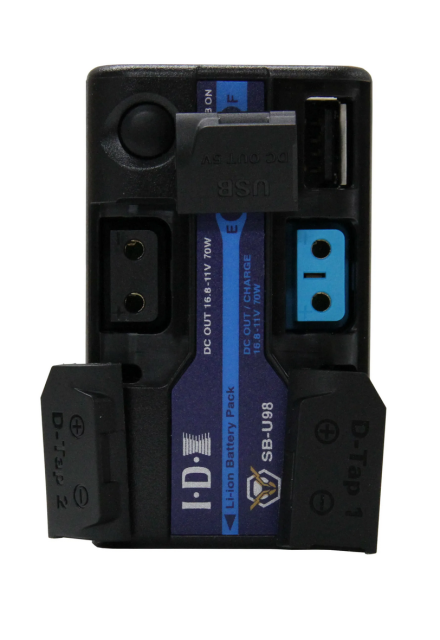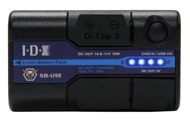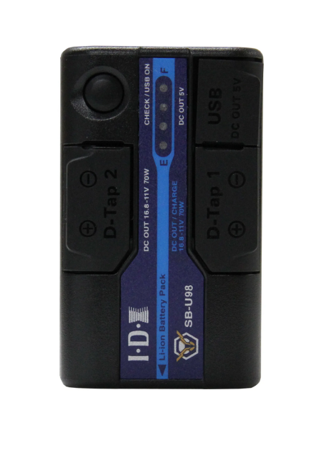 • Verfügt über D-Tap Advanced-, D-Tap- und USB-Ausgänge.