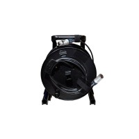 Canare L-2T2S professionelles symmetrisches 2-adriges 6,00 mm Mikrofonkabel mit Neutrik NC3-XX XLR-Steckern, aufgewickelt auf einer Schill GT 310.RM Kabeltrommel.