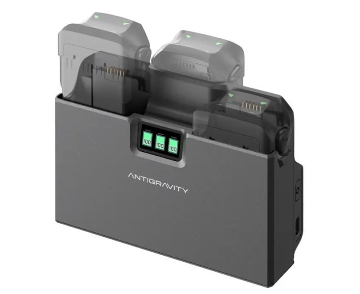 Lädt 1 Antigravity A1-Akku in 45 Minuten und 3 Akkus sequenziell in 135 Minuten