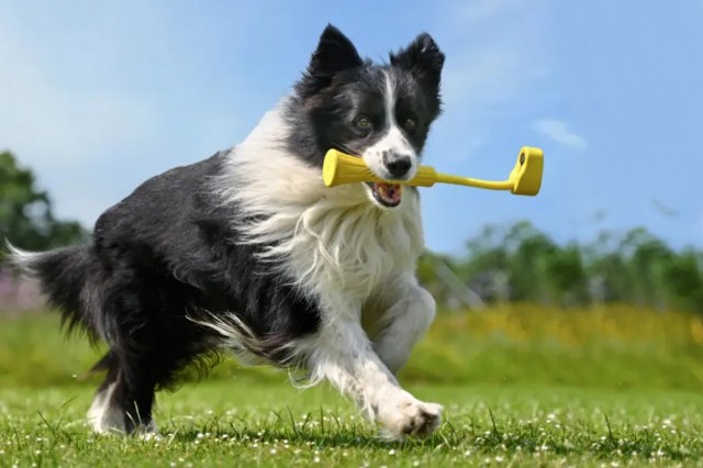 Aportationsspielzeug für Hunde mit Insta360 GO3 Kamerahalterung. Hergestellt aus ungiftigem, BPA-freiem Kautschuk, der für Haustierspielzeug verwendet wird.