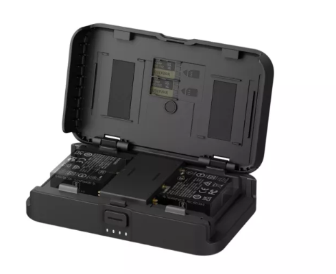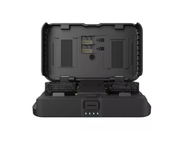 Mit dem tragbaren Ladecase von Insta360 (INST110-64) sind Sie überall mit Strom versorgt, egal wohin Ihre Abenteuer Sie führen. Dieses kompakte Case wurde für kreative Menschen entwickelt, die viel unterwegs sind. Es bietet eine Leistung von 10.000 mAh, sodass Sie zwei Akkus gleichzeitig aufladen und zwei microSD-Karten sicher aufbewahren können. Über den USB-C-Ausgang können Sie auch andere Geräte direkt über das Case aufladen. Die LED-Anzeigen zeigen den Akkustatus auf einen Blick an, sodass Sie immer über die verbleibende Leistung informiert sind.