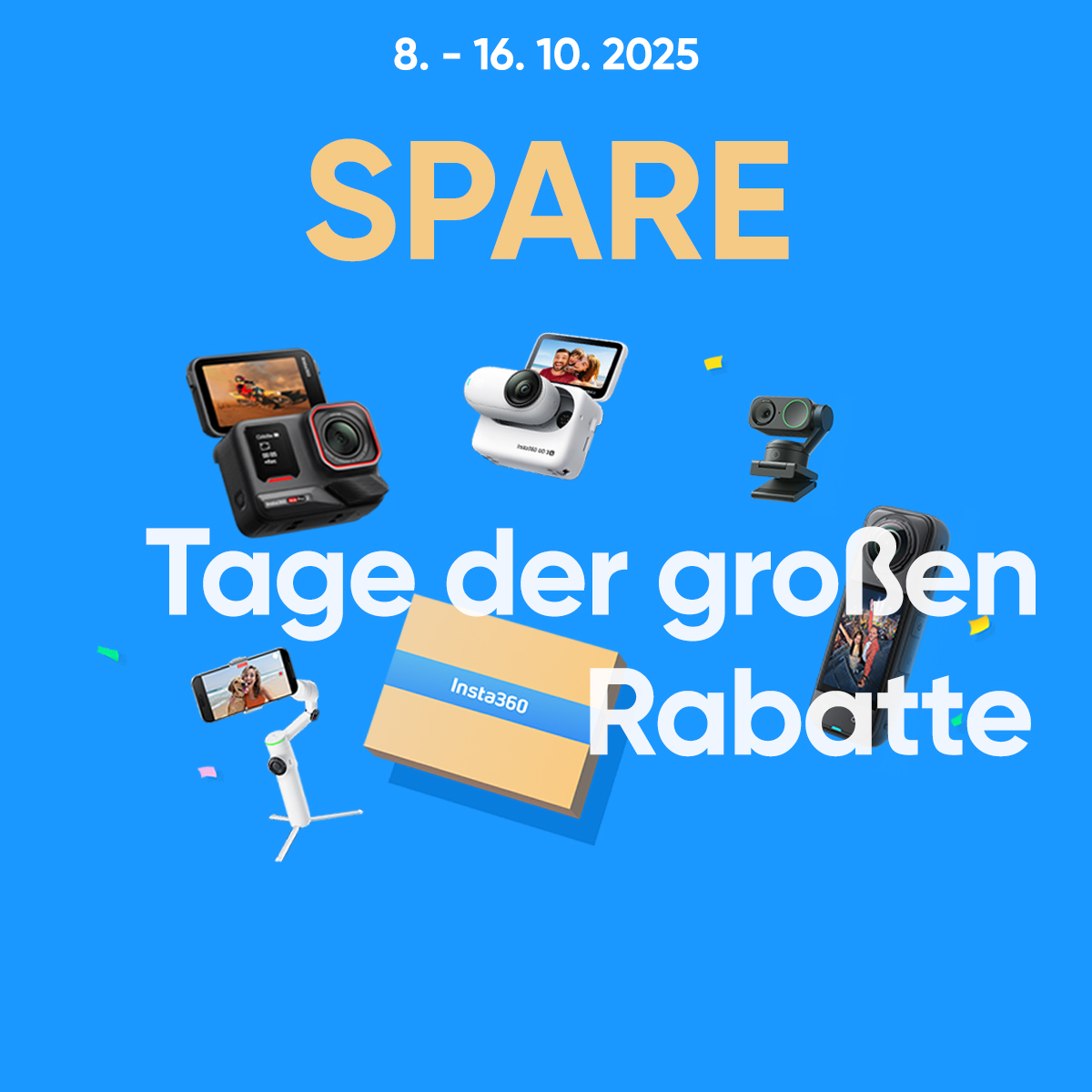 Wir haben großartige Neuigkeiten für Sie – vom 8. bis 16. Oktober 2025 gibt es eine limitierte Rabattaktion auf eine ganze Reihe ausgewählter Produkte der Marke Insta360! Egal, ob Sie Action-Videos drehen, streamen oder nach der richtigen kompakten Kamera für Ausflüge suchen, jetzt ist der ideale Zeitpunkt, um Ihre Ausrüstung zu erweitern und dabei zu sparen.