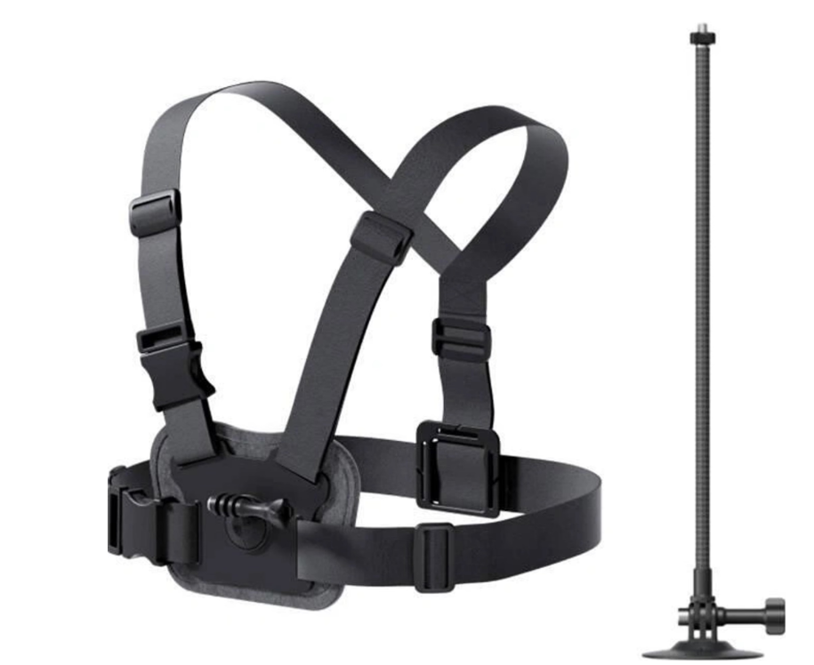 Der Brustgurt bietet eine sichere, freihändige POV-Perspektive für dynamische Aufnahmen, während das Helmhalterungsset mit Verlängerungsstange eine flexible Kamerapositionierung ermöglicht, sodass Sie ganz einfach einzigartige Blickwinkel und beeindruckende Aufnahmen erzielen können. Dieses Kit wurde für Skifahren, Snowboarden und andere Wintersportarten entwickelt. Es ist leicht, langlebig und auf Komfort ausgelegt, sodass Sie sich ganz auf den Nervenkitzel konzentrieren können, ohne sich um Ihre Kamera kümmern zu müssen.