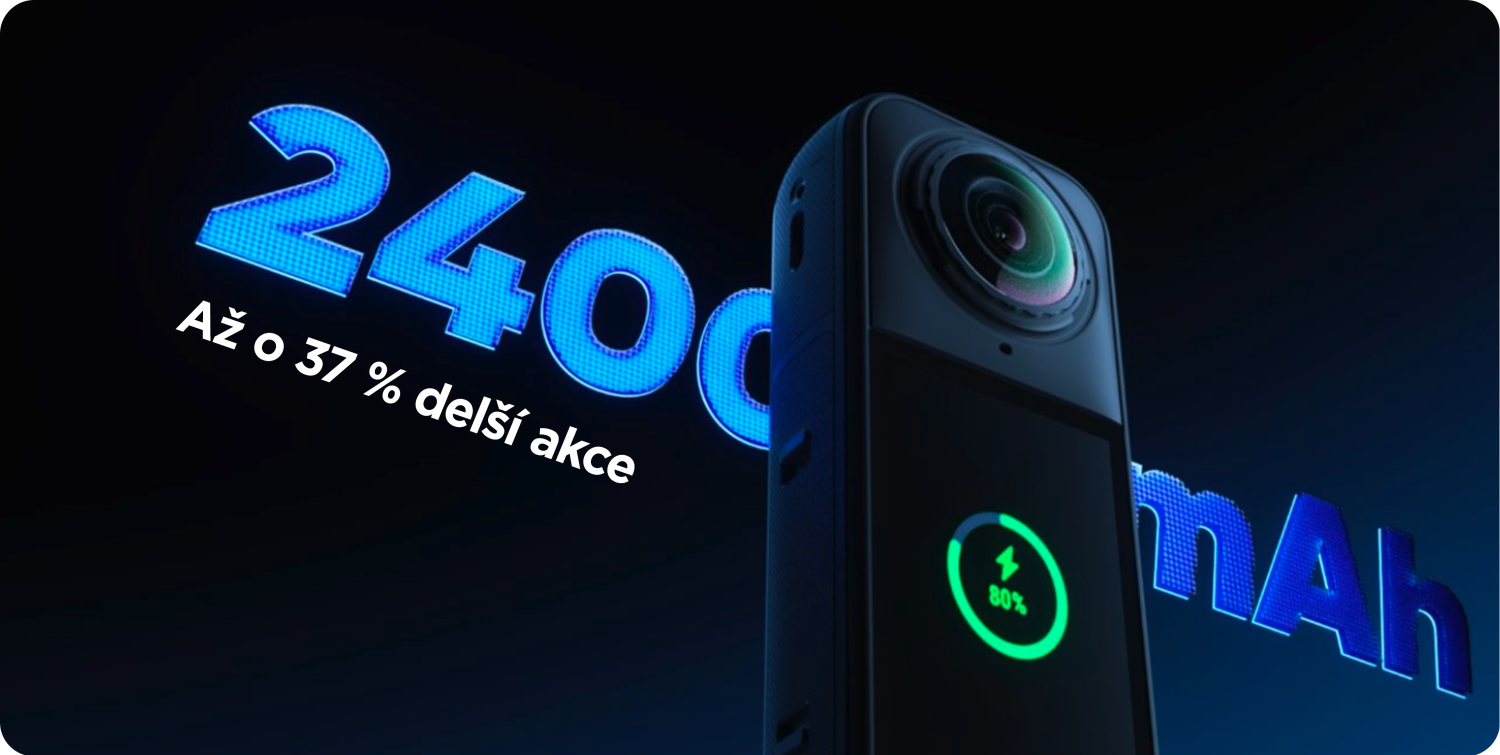 Der neue Akku mit einer noch größeren Kapazität von 2400mAhermöglichteine ununterbrochene Aufnahmezeit von bis zu 180 Minuten.Das reicht Ihnen nicht? Während einer 20-minütigen Pausekönnen Siedie X5wiederauf 80 % aufladen und dann weitermachen!