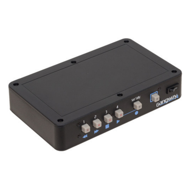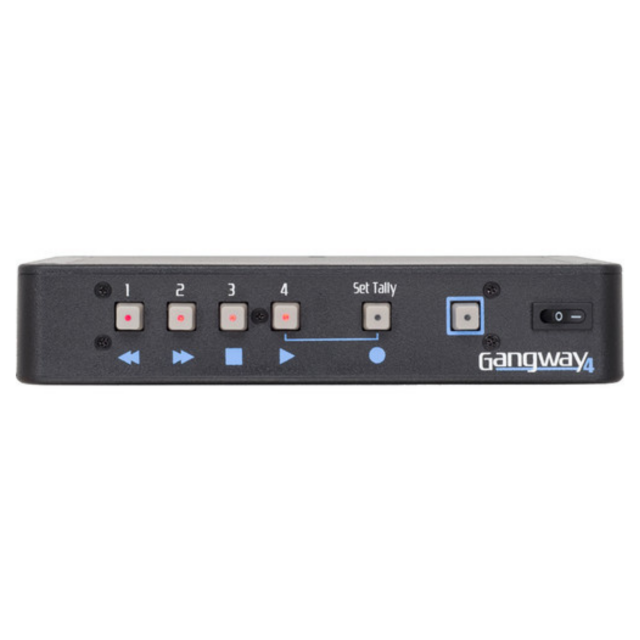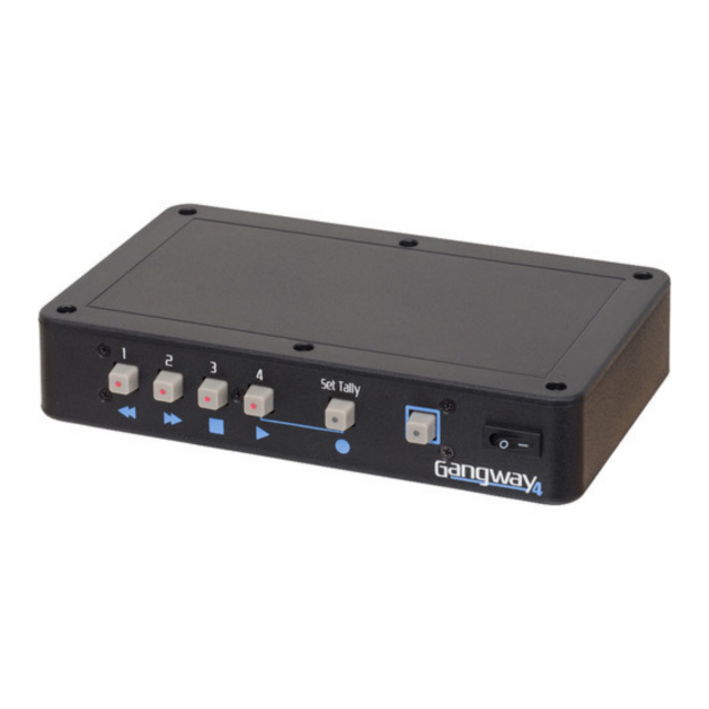 GangWay4™ ist ein kompakter RS-422-Gang-Roll-Switcher mit 4 Anschlüssen und GPI-Trigger-Box zur Steuerung von bis zu vier Videorekordern.