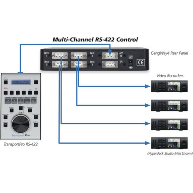 Schließen Sie einen beliebigen RS-422-Controller wie VTC1, MCS6 oder TransportPro an und nutzen Sie dessen einzigartige Fähigkeit, GangWay-Kanäle aus der Ferne auszuwählen.