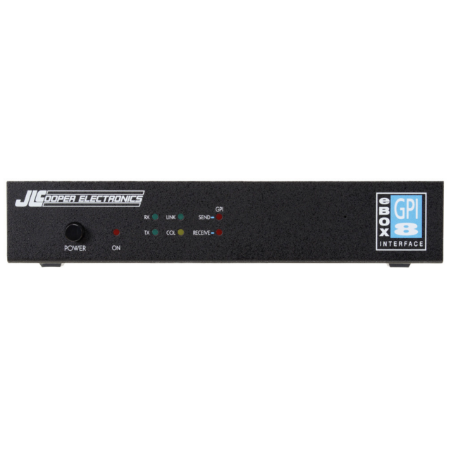 Das eBOX GPI8 Ethernet to GPI Interface von JLCooper ist ein Ethernet/GPI-Interface für Anwender, die GPI-Funktionen benötigen, aber keinen Bedarf an den erweiterten Seriell-über-Ethernet-Funktionen haben. Es bietet den zusätzlichen Vorteil, dass es die eBOX IO-Funktionalität (mit optoisolierten Eingängen und Relaisausgängen) beinhaltet und sBOX-kompatibel ist. Die eBOX GPI8 vereinfacht die Verkabelung über große Entfernungen, indem sie eine IP-adressierbare Punkt-zu-Punkt-Architektur verwendet, um Steuermeldungen über die vorhandene 10/100 BASE-T-Verkabelung zu senden. Sie ist ideal für LAN-, WAN- und Internet-Steuerung mit Umschaltern, computergestützten Systemen, Kameras, Projektoren und anderen Geräten, die GPI verwenden. Das Gerät wird für Fernsehsendungen, Streaming Media-Netzwerke, Multiroom-Editing-Einrichtungen, Nachrichtenproduktionen oder in jedem Audio-/Video-/Multimedia-Studio empfohlen, in dem Remote Hosts Geräte über große Entfernungen oder über das Internet steuern müssen.