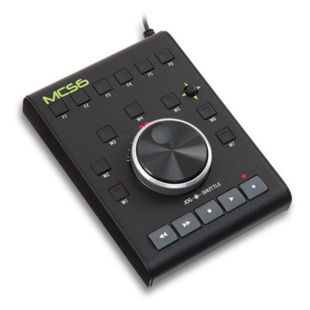 Die MCS6 USB Media Control Station von JLCooper funktioniert mit jeder Mac-Software und ermöglicht die Verwendung und Anpassung der mitgelieferten Tastensätze zur erweiterten Steuerung von Anwendungen wie Final Cut Pro X, iMovie, Premiere Pro, Pro Tools, Nuendo, Vegas Video und Media Composer. Sie verfügt über professionelle Transporttasten für Aufnahme, Wiedergabe, Stopp, Schnellvorlauf und Rücklauf. Die Media Station verfügt außerdem über eine V/Stick-Navigationssteuerung und hat 18 physische Tasten für eine Vielzahl von Bearbeitungsfunktionen. Ein präzises, optisch kodiertes Jogwheel mit einem konzentrischen Shuttle-Ring ermöglicht die framegenaue Steuerung von Audio oder Video.