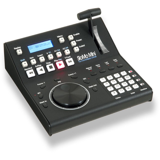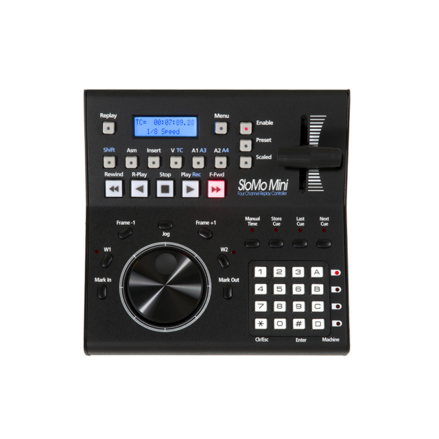 Der SloMo Mini USB 4-Kanal Instant Replay Controller von JLCooper kann zur Steuerung von Anwendungen verwendet werden, die den ES-SloMo J USB unterstützen, wie Dalet Brio und vMIX.