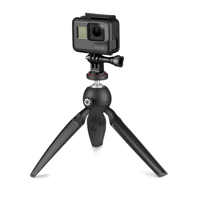 Mini-Stativ mit Doppelfunktion und Griff für Content-Ersteller, die kompakte Systemkameras und Zubehör verwenden.